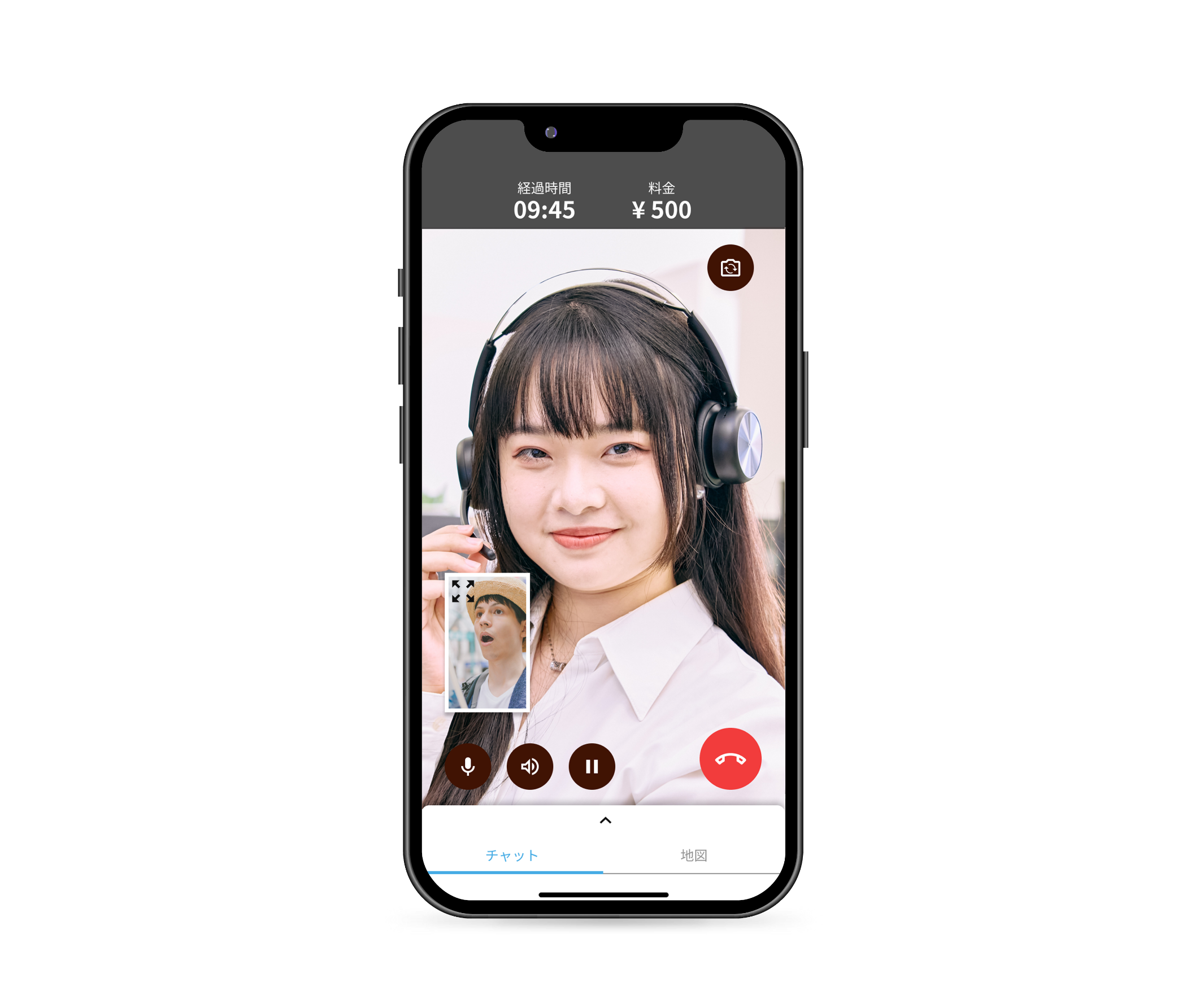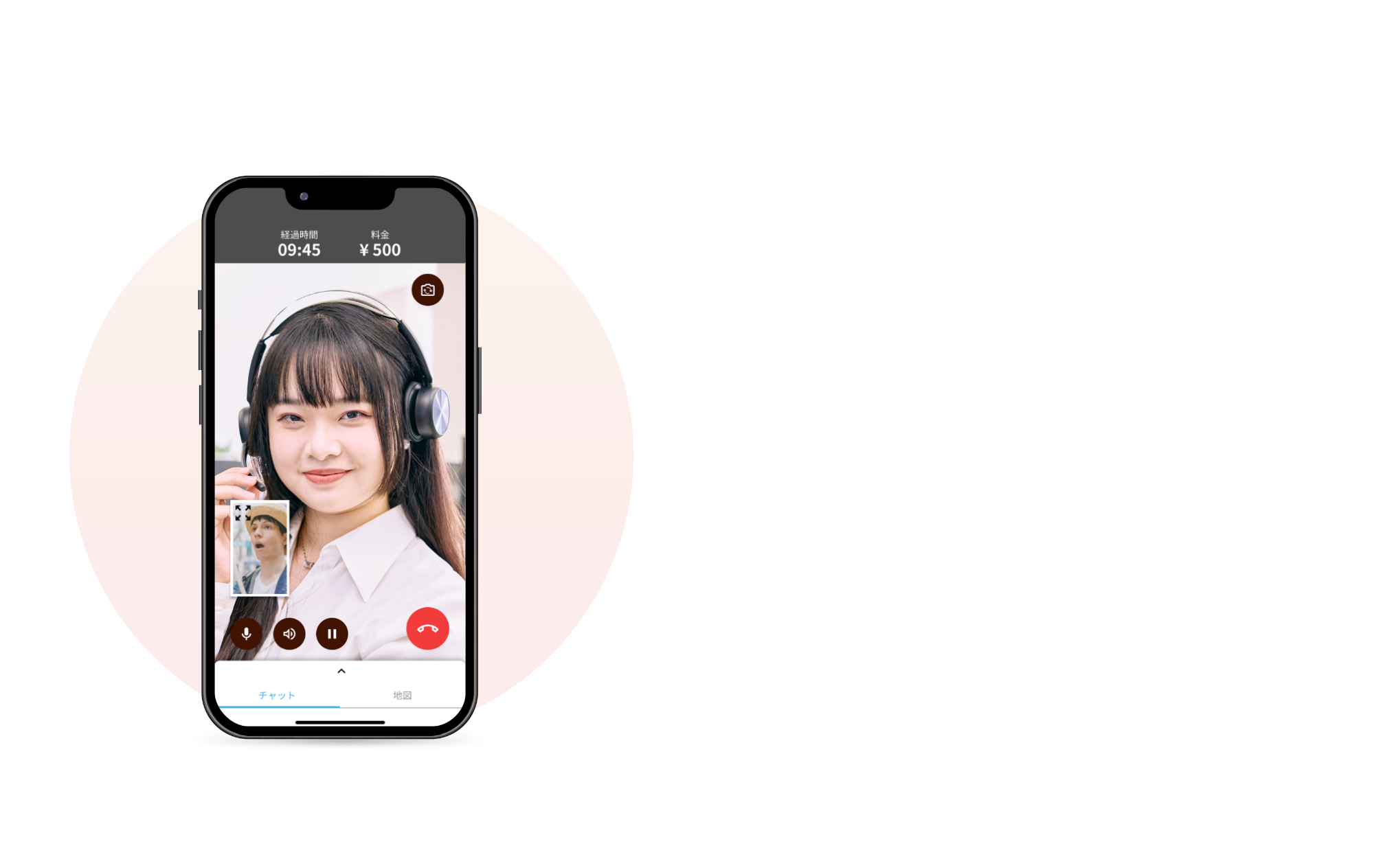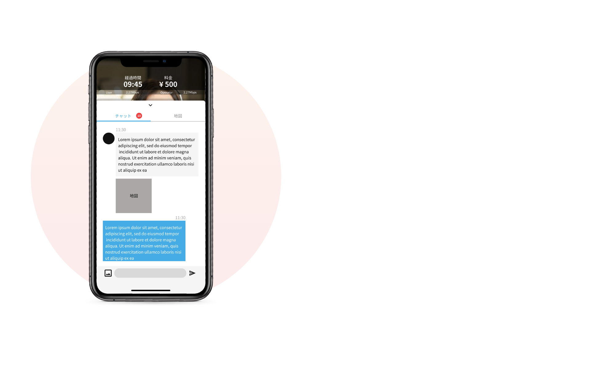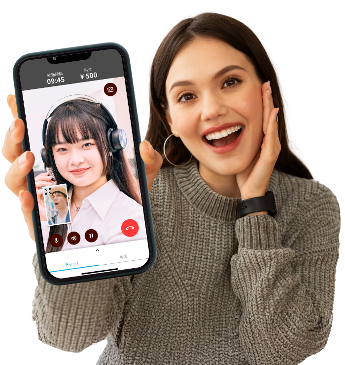 通过文字交流功能发送目的地或店铺信息的URL。 在通话的同时也可以查看聊天界面!如果旅行向导需要时间进行搜索,可以通过聊天界面进行回复等 可便捷地进行沟通。