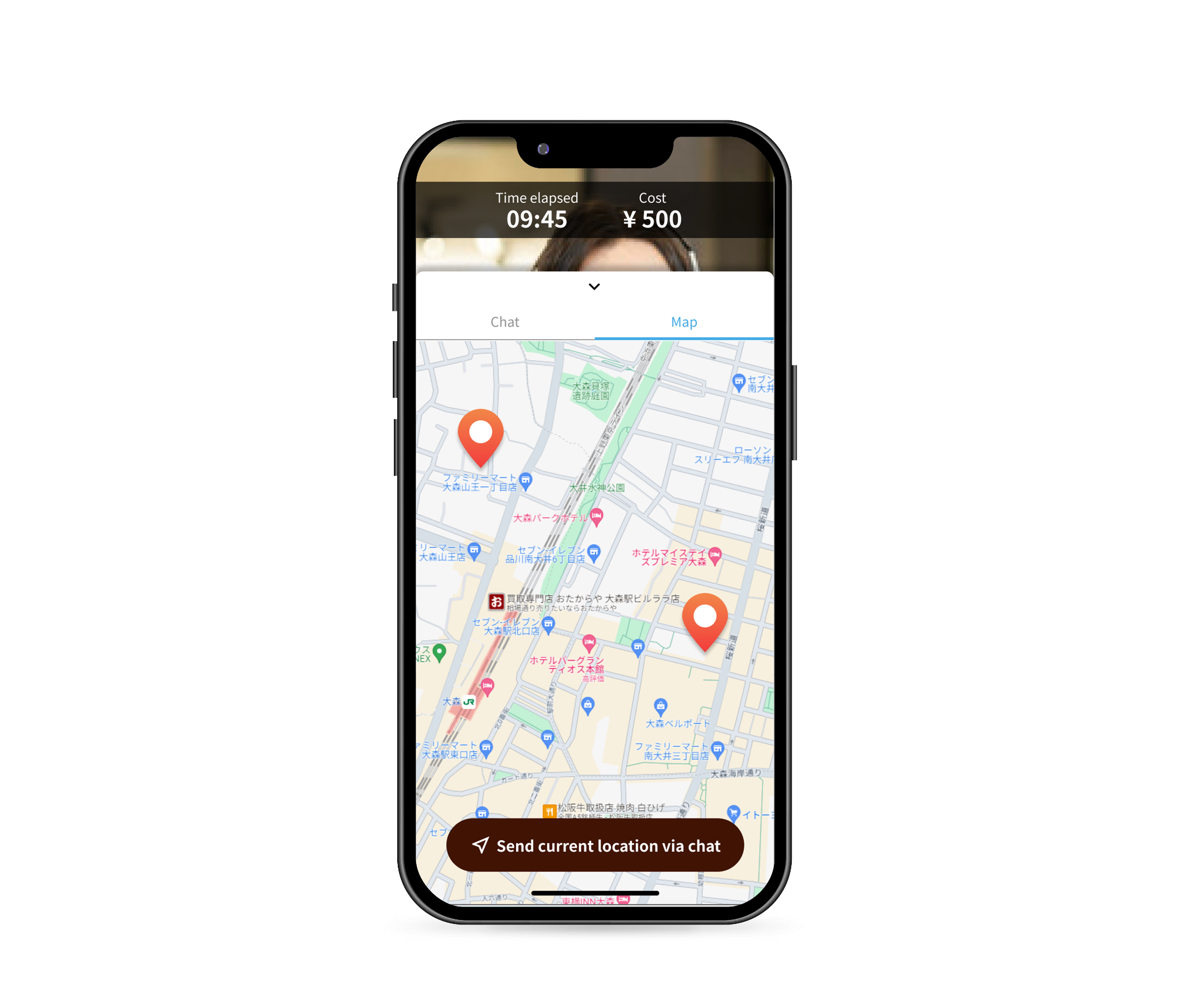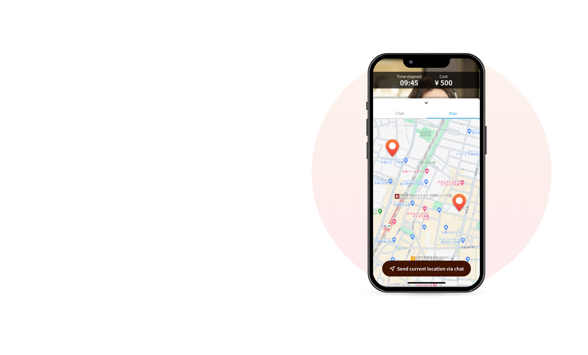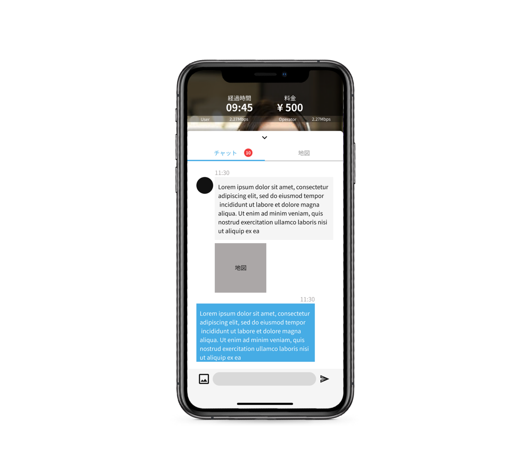 通过文字交流功能发送目的地或店铺信息的URL。 在通话的同时也可以查看聊天界面!如果旅行向导需要时间进行搜索,可以通过聊天界面进行回复等 可便捷地进行沟通。