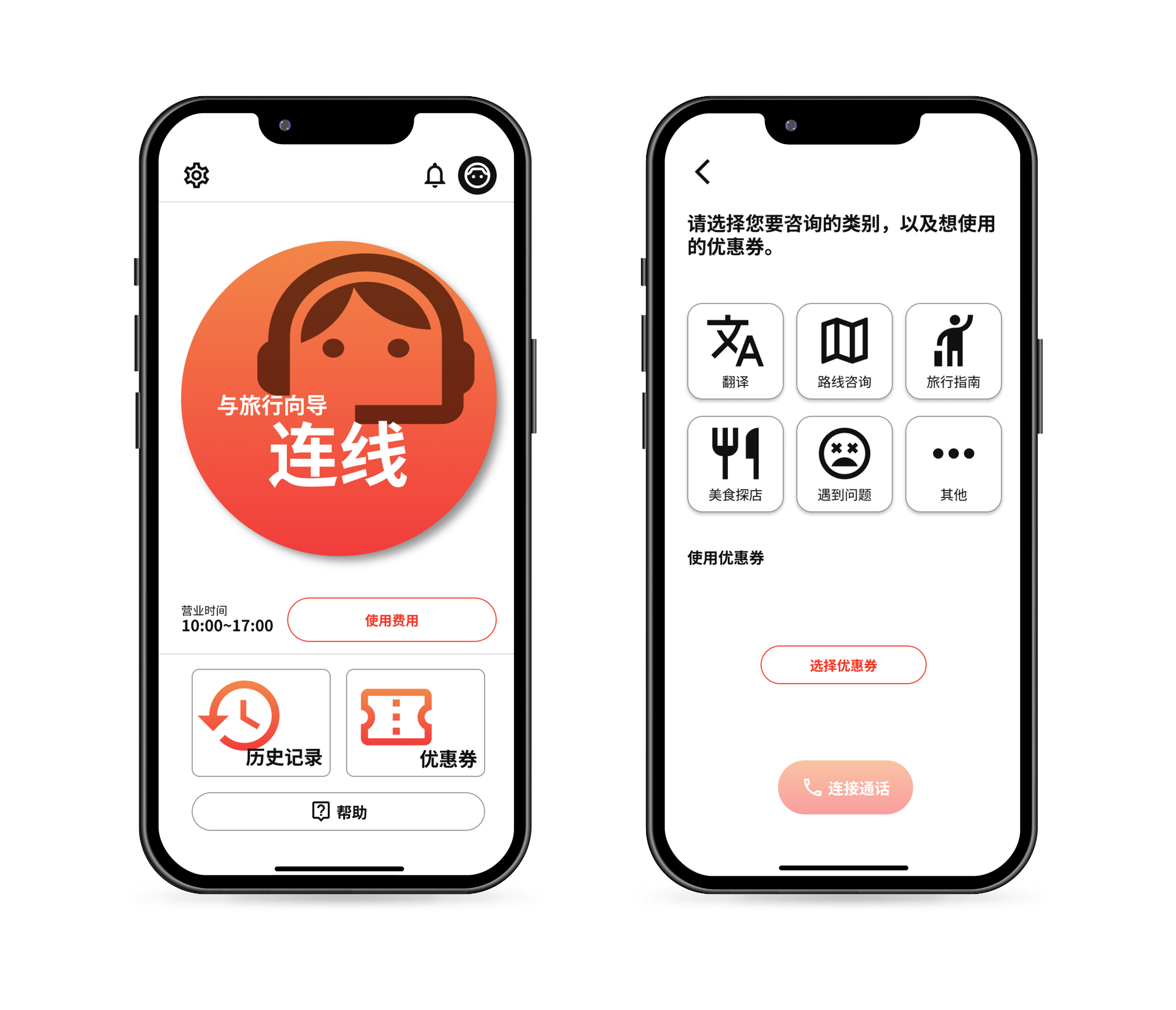 只需选择想咨询的内容,即可连接到旅行向导。